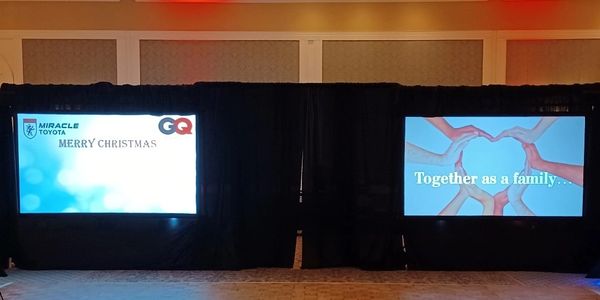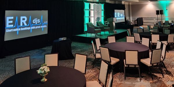 4 hours of our Pro sound, lighting, up-lights, and your choice of: (1) Screen and projector or (1) 50" Monitor, to show your images, your logo and more, for just $700.
