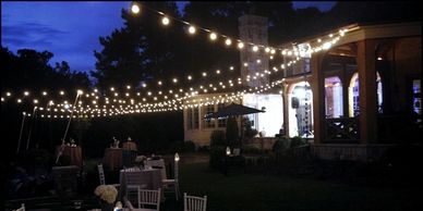 String lights bring a special effect to your dinner, get together, outdoor or indoor setup.